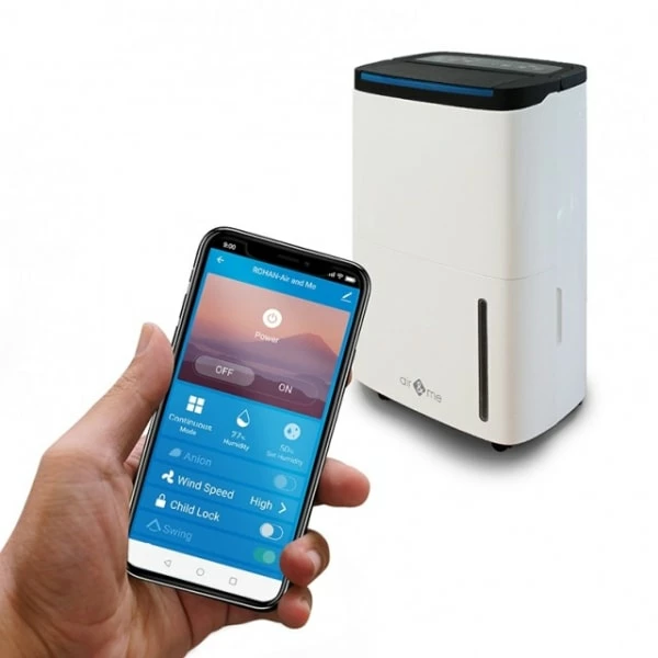 Avfukteren kan styres via en app på telefonen (Apple og Android). Du kan også styre den fra betjeningspanelet om du ikke vil bruke appen. Appen som brukes er en fellesapp som også benyttes av mye annet elektronisk utstyr. Så om du har annen hjemmeelektronikk så kan du mest sansynlig bruke samme app for flere av enhetene dine. Appen «Smart Life» dekker avfukter, luftfukter, vifte, belysning, kjøleskap og mye annet utstyr.