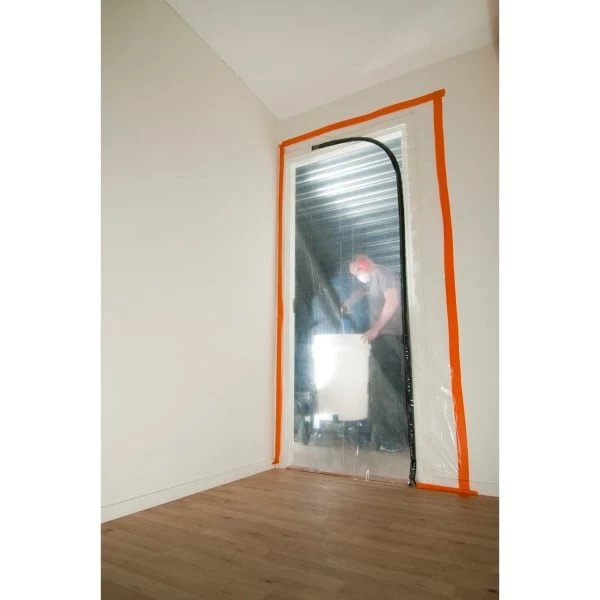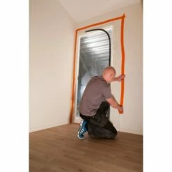 Støvdør fra Cover med L-åpning og glidelås. Til dekking av f.eks. Døråpninger ved renovering