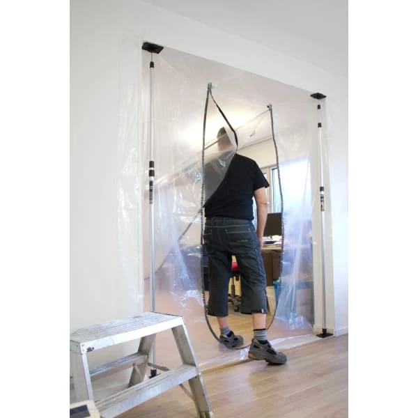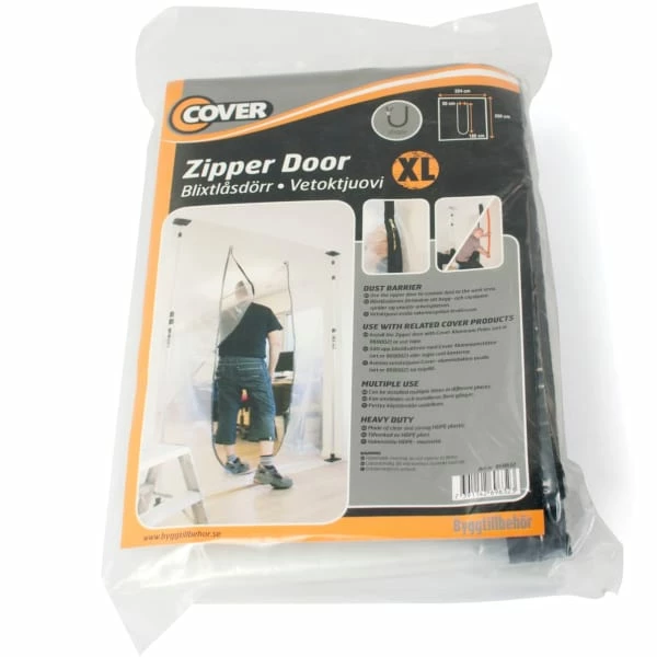 Støvdør fra Cover med XL u-åpning og glidelås. Til dekking av f.eks. Døråpninger ved renovering