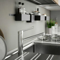 Det diskret designet fullendes av flere funksjonelle detaljer som gjør vannkranen uunnværlig på kjøkkenet ditt.