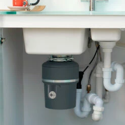 - En vannlås for kjøkkenkvern til enkel- eller dobbel kummevask for enkel montering
