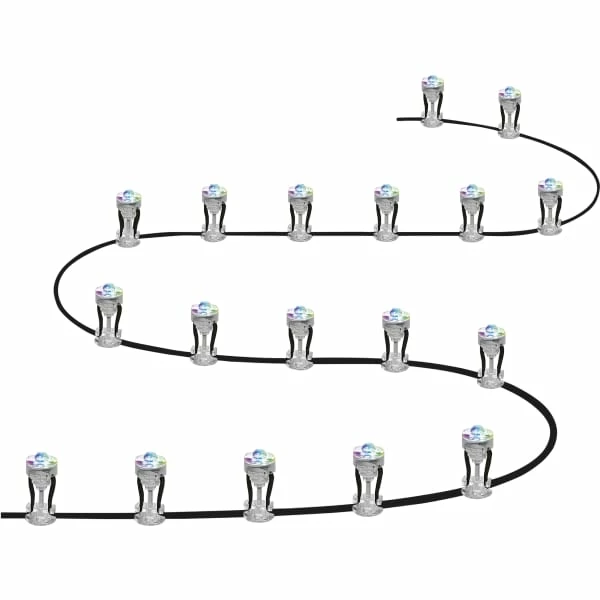 Denne SMART+ hagelampen ved navn Dot, er en 14 meter lang ledning (5 meter ledning til den første lyskilde, deretter 50 cm mellom hver) hvor det er påsatt 9 lyskilder. Lyskildene kan plasseres hvor man selv ønsker det, og dermed kan man lage en utrolig flott lyseffekt i hagen. Nodene kommer hver med en 2,5W LED lyskilde, som gir muligheten for å ha et varmt, hvitt lys på 3000K eller bruke RGB funksjonen, som tillater at man skifter og innstiller i mellom 16 millioner forskjellige farger. Lyskildene kan i tillegg dimmes.