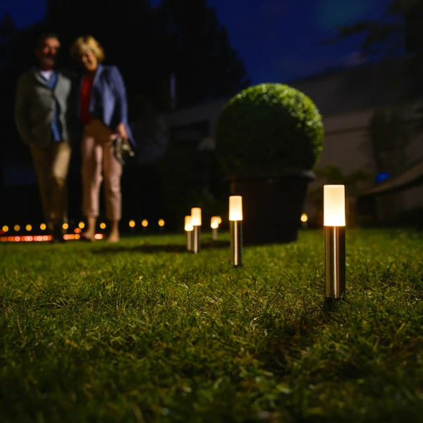 Denne SMART+ hagelampe ved navn Garden 5 Pole. Stengene settes i jorden hvor man har lyst til. Dermed kan man få en utrolig flott lyseffekt i hagen. Stengene kommer hver med en 7,5W LED lyskilde, som gir muligheten for å ha et varmt, hvitt lys på 3000K eller bruke RGB funksjonen, som tillater at man skifter og innstiller i mellom 16 millioner forskjellige farger. Lyskildene kan i tillegg dimmes.