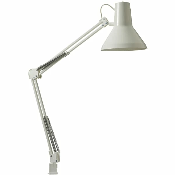 Den klassiske arkitektlampen med 4 kraftige fjær og hode i ét stykke metall. Lampen leveres med bordklemme og veggbeslag og innebygget bryter på hodet. Jensen har E27 fatning og leveres uten lyskilde.