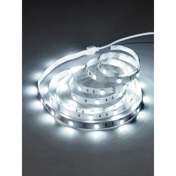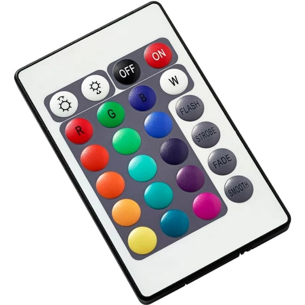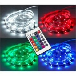 LED bånd med fjernkontroll, med uante bruksmuligheter i f.eks. klesskap, bokreoler samt hylleskabe. Det kan skiftes mellem 16 forskjellige farger. LED strip’en har selvklebende bakside, lengden kan lett kortes ned.