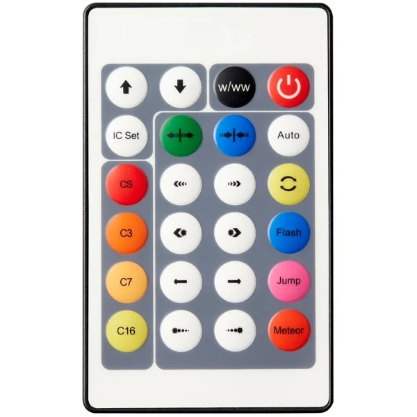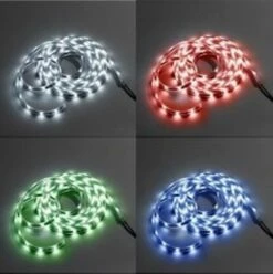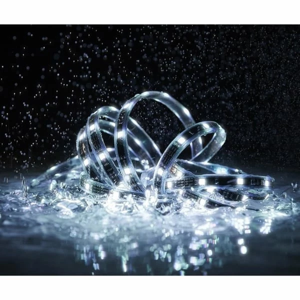 LED bånd med fjernkontroll, til ute- og innendørsbruk med uante bruksmuligheter (f.eks. blomsterbed, altaner, klesskap eller i hyller). LED strip’en består av 150 dioder, som kan skiftes mellem 16 forskjellige farger (Blå, rød, grønn, lilla, turkis, gul, hvit, lavendel, lyseblå, mintblå, lysegrøn, rosa, karrygul, isblå, ametyst og lys lilla). De 8 første farger kan brukes individuelt, mens de resterende 8 fargene, inngår i forskjellige programmer. LED strippen kontrolleres fra den medfølgende fjernkontrollen. Når fjernkontrollen brukes skal den peke mot den hvite mottakerboksen, hvor ledning er samlet. Lengden på LED-strippen kan kortes ned én gang.