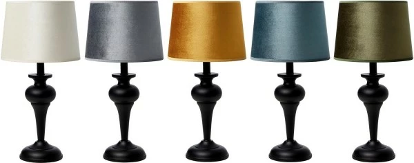 Glatte Velour lampeskærme: Vi viser også et billede af SIlke bordlampen med 5 forskellige farver velour lampeskærm som er lavet i 2 størrelser. Vil du have denne lampeskærm så hedder den Milano og her vælger du hhv lille størrelse skærm til lille størrelse bordlampe fod og stor skærm til stor bordlampe. Find skærmene under denne tekst.