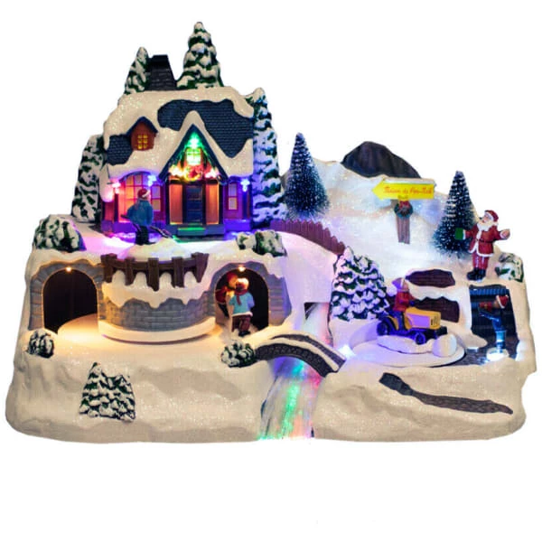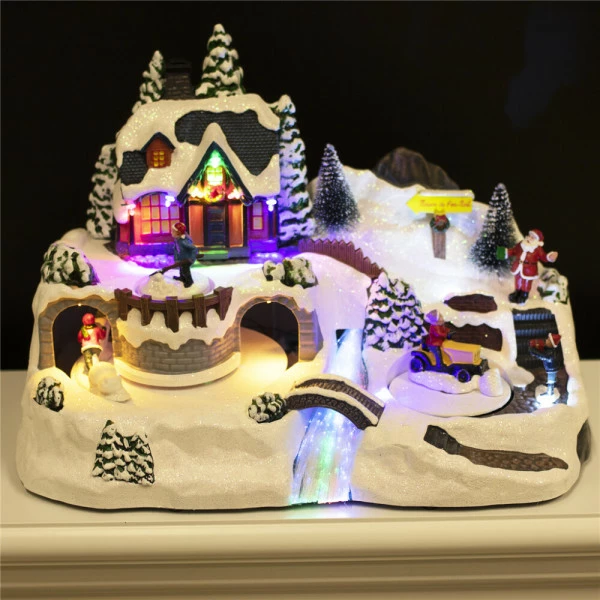 Koselig julelandsby med lys og musikk. Landsbyen har et trehus, en snømann, en flod og en traktor. Julelandsbyen er bevegelig og har flotte LED-lys rundt byen.