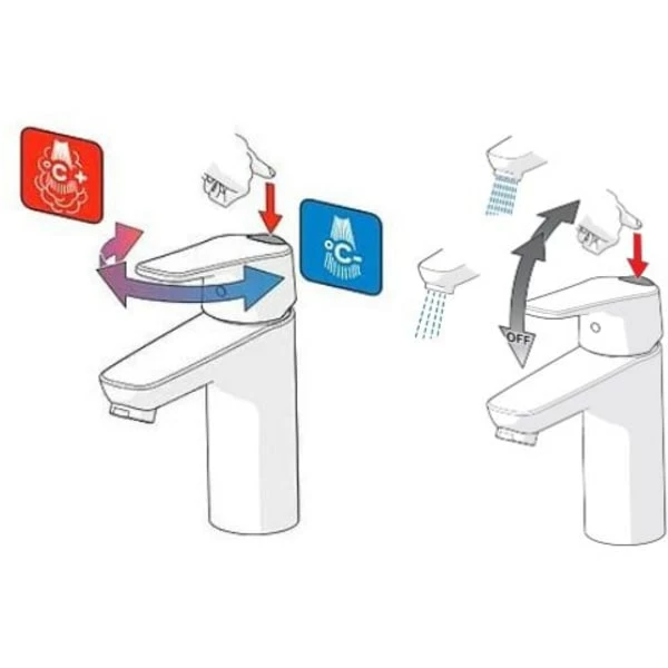 Alle blandebatteriene i serien leveres med en smart eco-knapp som gjør det enkelt å spare på vannet – opptil 30%. Hvis du skal bruke en større vannmengde trykker du på knappen imens du løfter opp håndtaket. Knappen brukes også til å begrense vanntemperaturen.