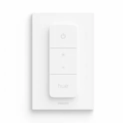 Det følger med en bryter som kan dimme, som du kan plassere akkurat hvor du har behov. Den er nemlig batteridrevet og kan derfor være lett tilgjengelig akkurat der hvor du har bruk for den. Du kan med et klikk skru opp og ned for lysstyrken eller fargetemperaturen. Bryteren kan festes til veggen eller en magnetisk overflate, og selve bryteren kan tas ut av holderen og brukes som fjernkontroll.