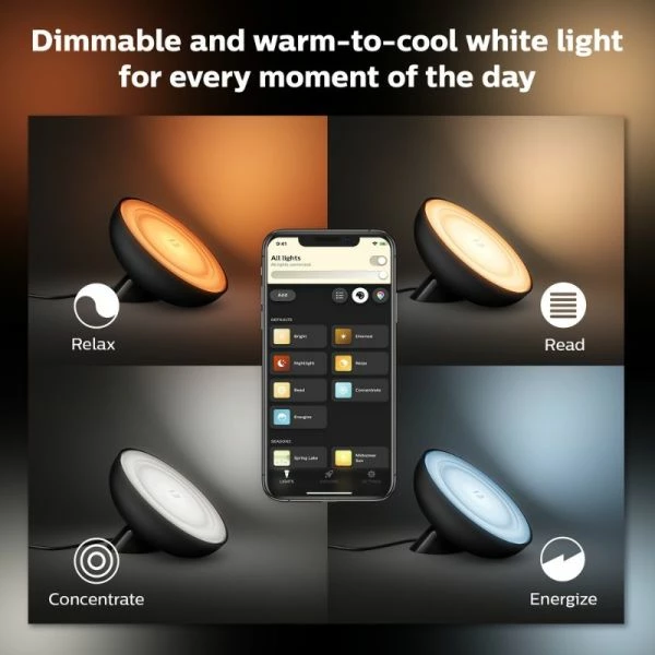 Et av Philips Hue seriens første produkt er nå tilbake. Denne gangen i et sort aluminiums design og med en oppgradert Bluetooth funksjon. Fra starten har Bloom bordlampen vært i Philips Hue universet, og med denne nye, oppgraderte versjonen er det virkelig blitt satt fokus på detaljene.