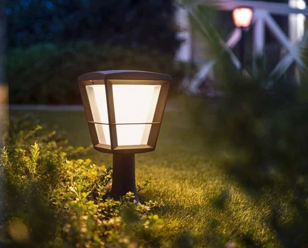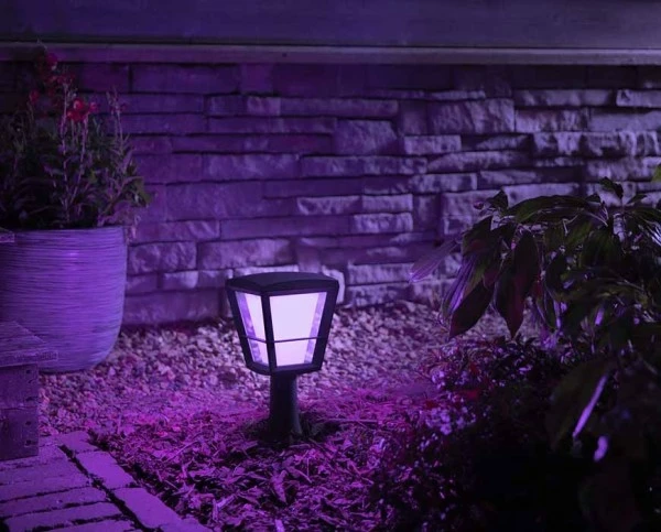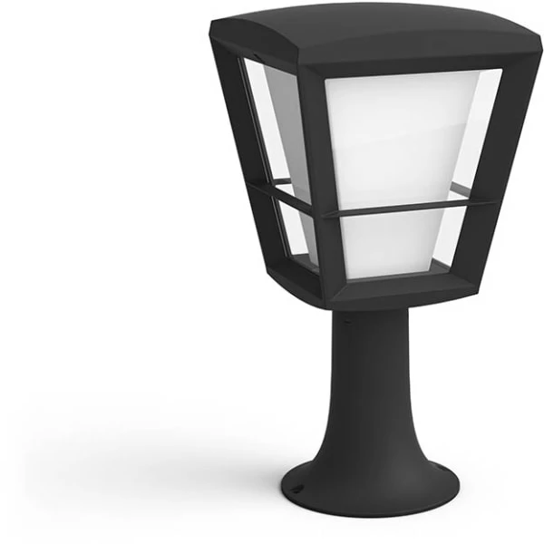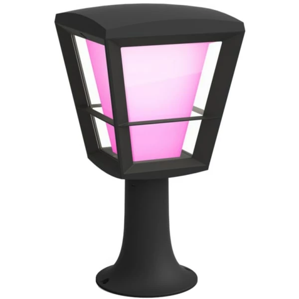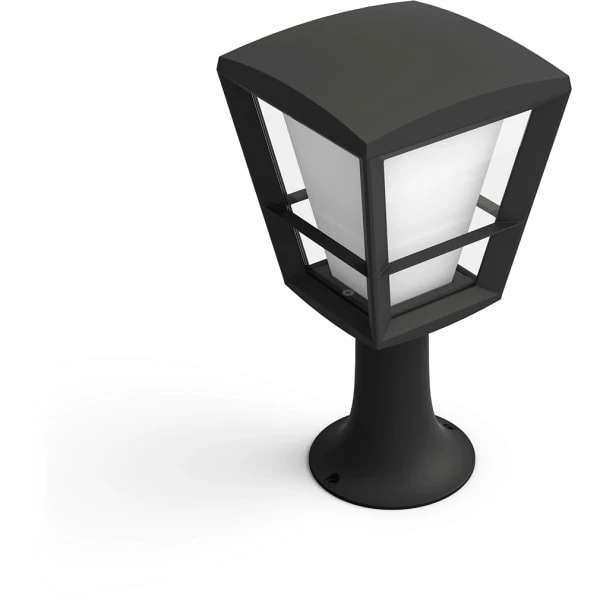 En utelampe i denne fasong, har utrolig mange bruksmuligheter – ofte ser vi den helt tett nede ved jorden, langs med stier og ellers ute i hagen. Med Philips Hue Econic pidestall utelampe får du på en fantastisk og dekorativ måte lekker og Smart utendørsbelysning hvor du med få tastetrykk på din telefon kan få helt perfekt trådløst utelys i hagen.