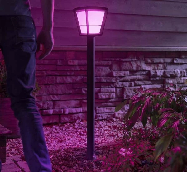 Moderne og klassisk utendørs pullerlampe i et vakkert og tidløst design. Her får du en Philips Hue utelampe som kan gi deg lys i 16 millioner forskjellige farger, samt alle de hvite nyanser av lys med få tastetrykk.