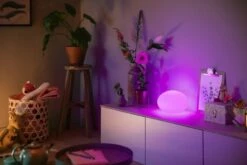Denne bordlampe fra Philips Hue Flourish har rillet glass – utviklet til nettopp Philips Hue lys. Det ser utrolig flott ut, med et lys som spres så fint ut i rommet der hvor du setter din bordlampe, både når det er farget lys i lampen samt med de hvite nyanser av lys. Dette er den perfekte Philips Hue bordlampe i glass med farget lys – du bør overveie hvor du setter lampen, den bør absolutt være endel av interiøret!