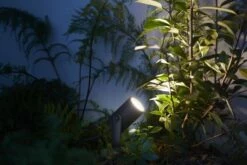 Lily-lampen fra Philips Hue er en spot som kan belyse områder i hagen hvor du vil ha ekstra fokus. Det kan være for å lyse opp blomsterbed, krukker, trær eller noe annet.