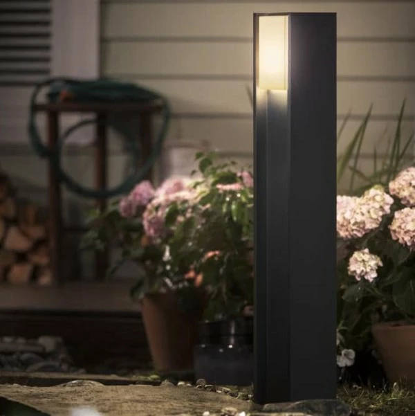 Turaco er navnet på serien af utendørslamper fra Philips Hue. Super stilige nattlampe laget av antracittgrå aluminium med en opal-hvit skjerm på plast.