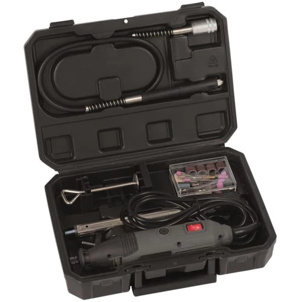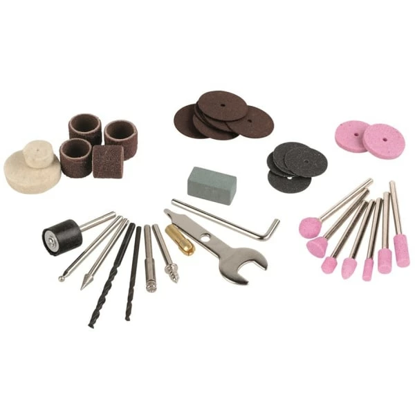 - Inneholder 40 tilbehørsdeler til metal, plastikk og sten