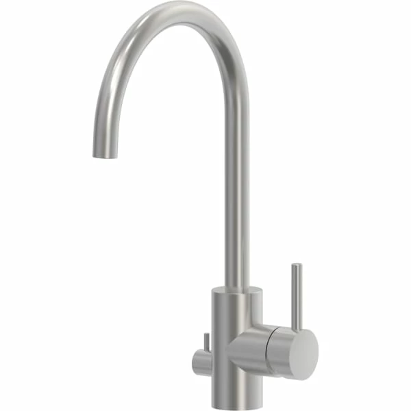 Kjøkkenbatteri i tidløs design. Med høy rund C-tut er det enkelt å fylle gryter og karafler.