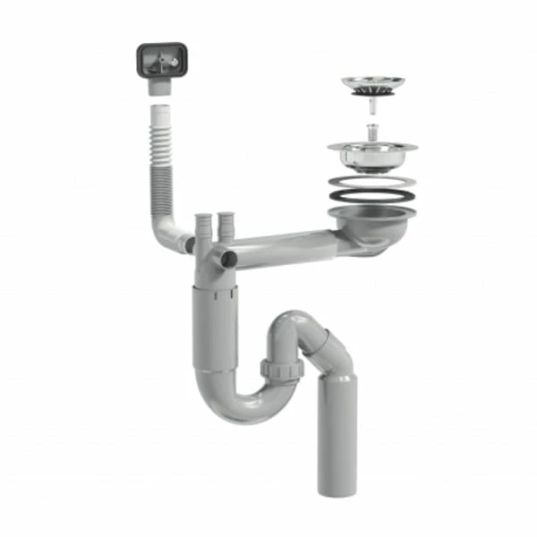 Leveres med manuell kurvventil og vannlås som kan justeres for best mulig utnyttelse av plassen i underskapet.