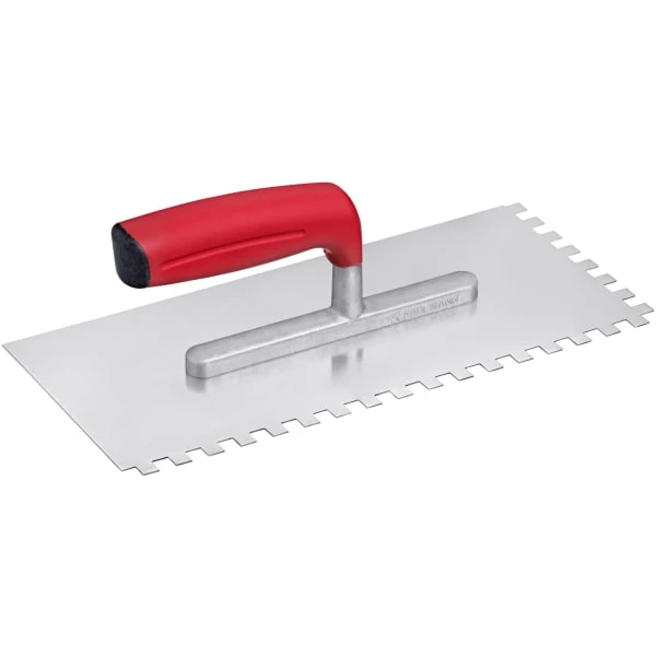Topline tannsparkel i rustfritt stål. Det ergonomiske soft-grip håndtaket gir et godt og behagelig grep. God til flisemuren og måler: (B x L) 130 x 280 mm.