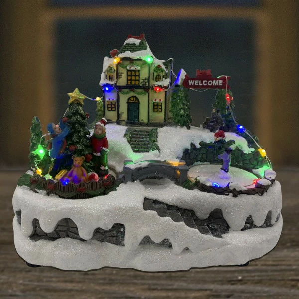 Julelandskab som dekorativ belysning. Julelandskab kan stå og lyse opp i mørket. Måler 22x18x15 cm og bruker 3xAA batterier (medfølger ikke). IP20 for innendørs.