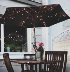 Veli Solcelle Parasoll LED Lyslenke til Ø3m parasoll. Smart LED Lyslenke som opplades via et solcellepanel om dagen – og tenner automatisk når det blir mørkt. På denne måte får du ekstra lys når du sitter under parasollen, samtidig som det gir en lekker og fin stemning.