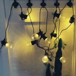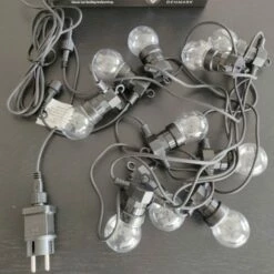 En flott og praktisk LED lyslenke med 10 fine klare kuler og et behagelig varmhvitt LED lys. Med denne lenken får du en enkel og god måte en ekstra koselig belysning til terrassen, hagen osv. De 10 klare kulene er plassert med ca 50 cm mellomrom på den kraftige og svarte gummiledning. Du kan i tillegg montere opptil 3 lyslenker sammen på en transformator så den kan bli hele 18 meter lang.