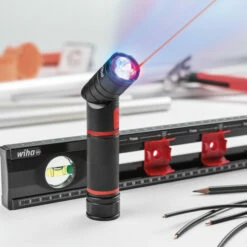 Wiha lommelykte med laser og UV lys, som kan gjøre det enklere for elektrikeren å finne sitt UV markerte verktøy, i mørke rom. Samt LED med 2 lysnivåer så man lett kan tilpasse etter forholdene.