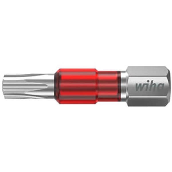 Alle Wiha TY-bit er markert med en rød farge, og kan derfor enkelt finnes blant dine andre bits. Denne fargemerkingen er en UV farge som er med til å gjøre bitten lett å finne, da den lyser opp hvis man lyser med UV lys på den.