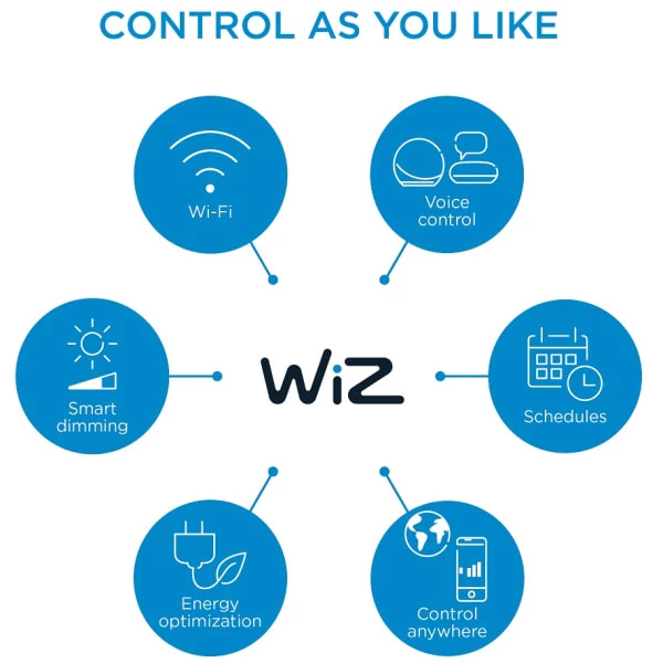 Du kan styre Wiz Bar-lampen direkte fra telefonen eller fra nettbrettet ditt. Du trenger ikke engang å kjøpe andre lamper eller pærer for å kunne dra nytte av denne smarte funksjonen. Bare last ned Wiz-appen gratis og koble til Wifi, så er det ingen begrensninger for hvordan du kan styre dine smarte og intelligente lys i hele hjemmet ditt.