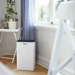 Woods MDK er en liten, kompakt og flyttbar avfukter. Den er ideel i mindre rom, hvor det er høy fuktighet. Det kunne være på badeværelset eller hvis man skal tørke tøy i et lite rom. Den har et praktisk og brukervennlig design med håndtak, som gjør det lett å flytte avfukteren fra rom til rom.